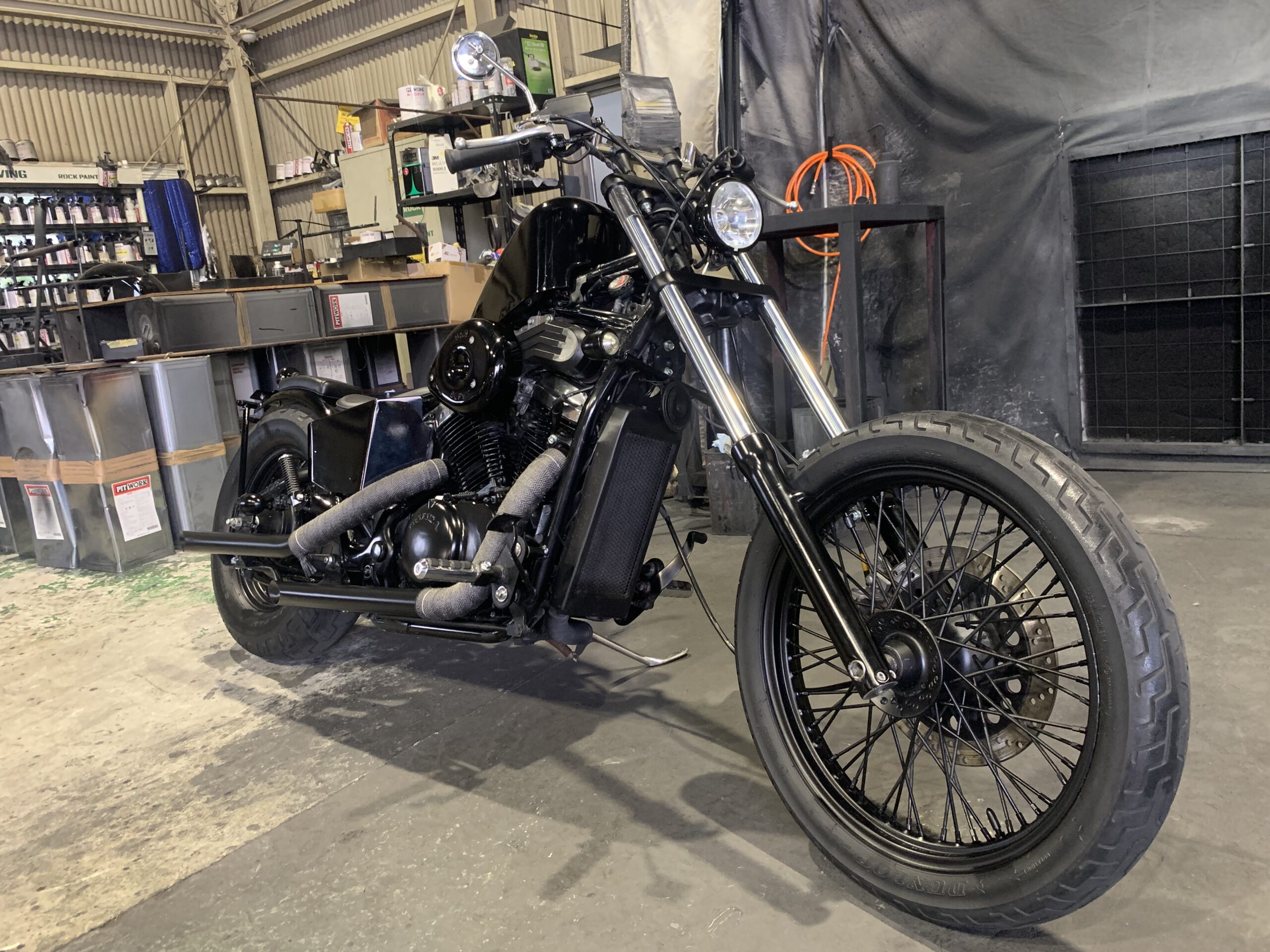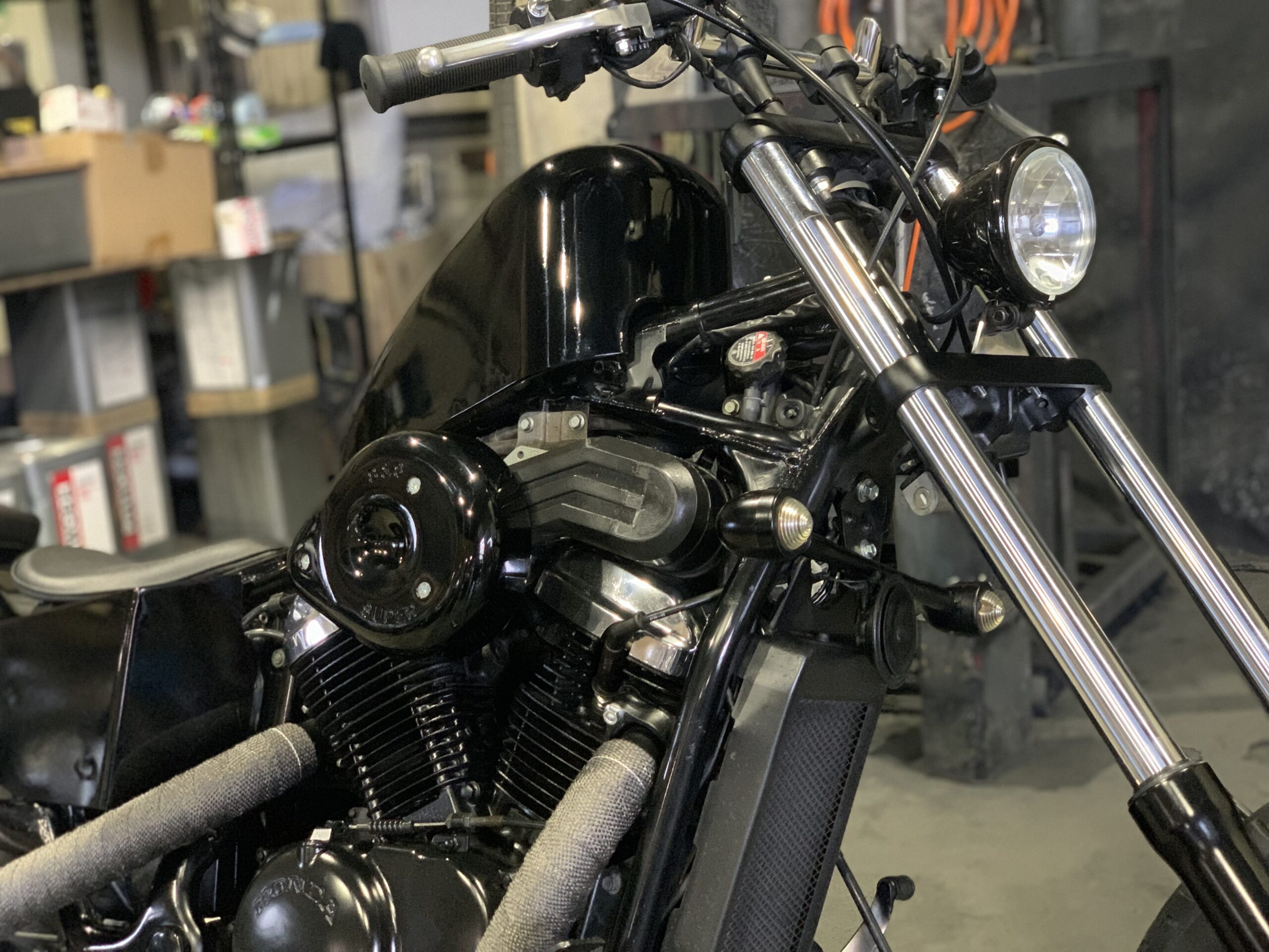 トリプルは寝かさずにフォークを延長したことにより前上がりのスタイルとなり、乗車姿勢がチョッパー感溢れる仕上がりになりました。