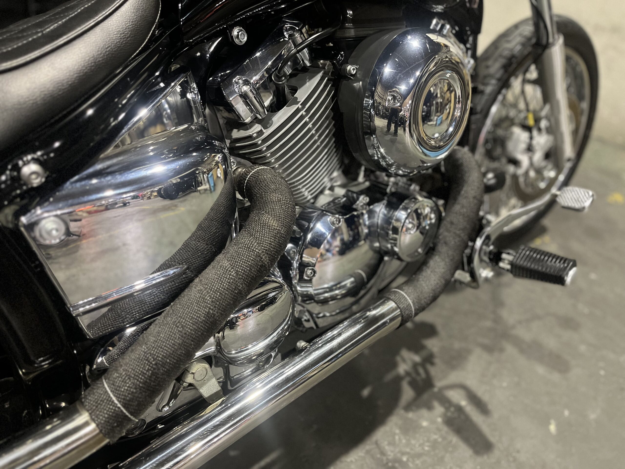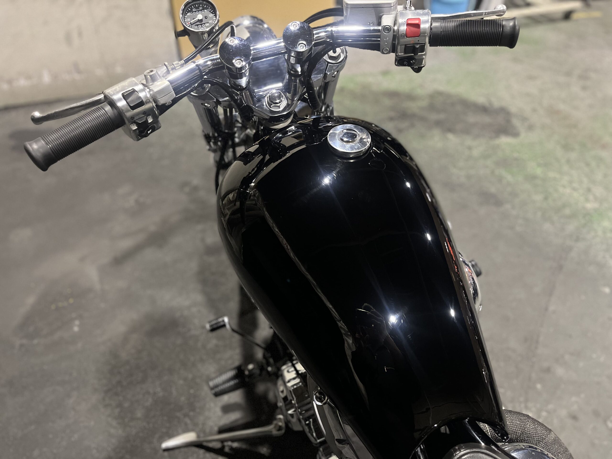 エンジン周りや足回りのパーツはメッキで残し、外装類はシンプルに艶ありの黒で仕上げました。