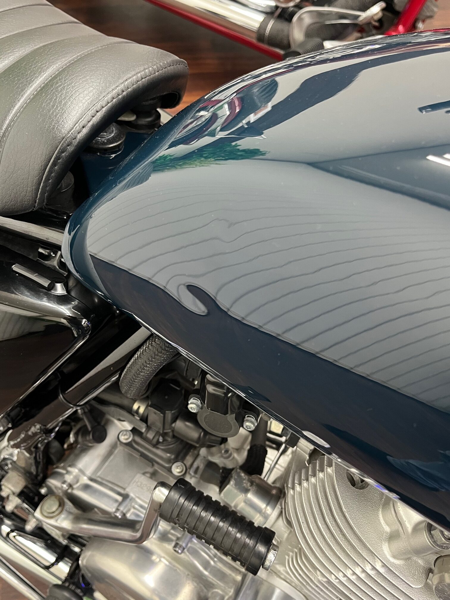 またシートフレームはループフレーム加工を施し、社外のセミダブルシート&ショートリアフェンダーにショートテールの組合せでスマートなリアビューに☆