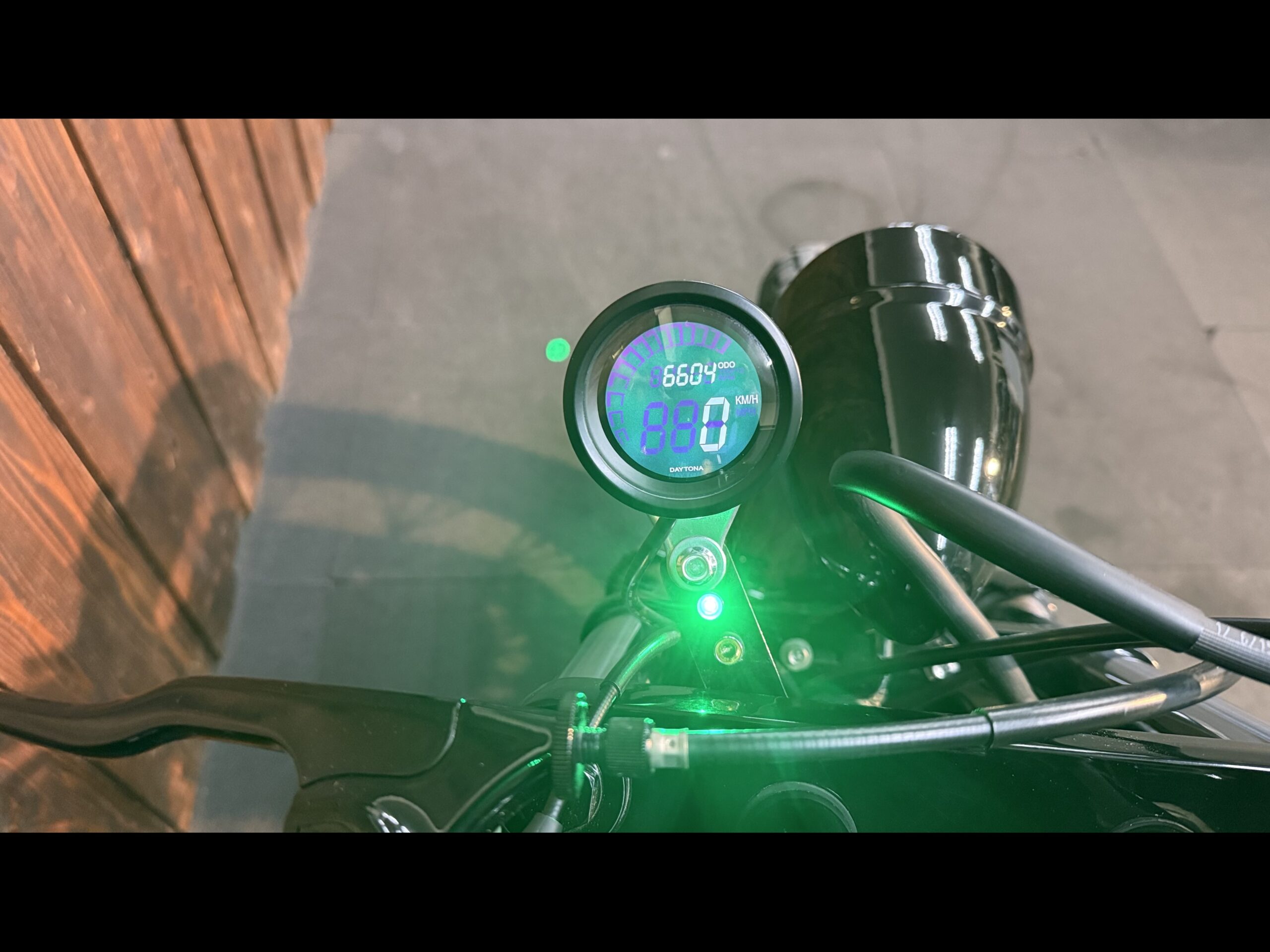 今では廃盤となってしまったDAYTONA製のVELONAデジタルメーターを採用し、ヘッドライトを含む灯火類はすべてLEDに変更しています☆