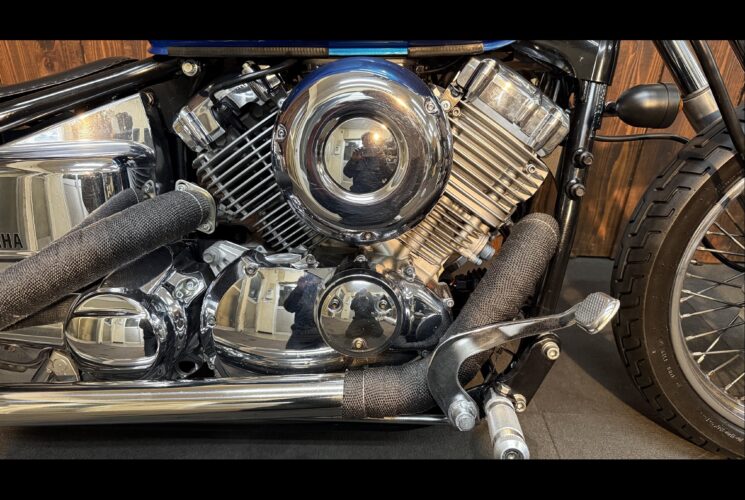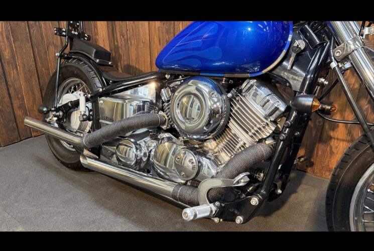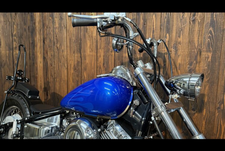 広めのエイプハンドルに、スタンダードなマフラーをチョイスした王道のスタイル☆