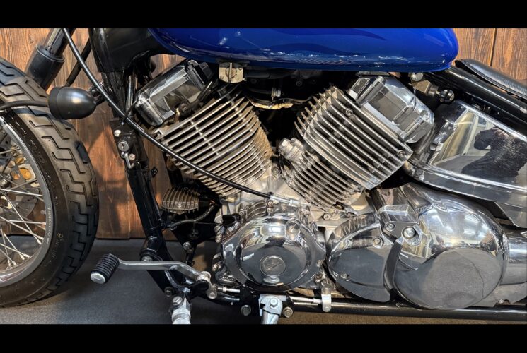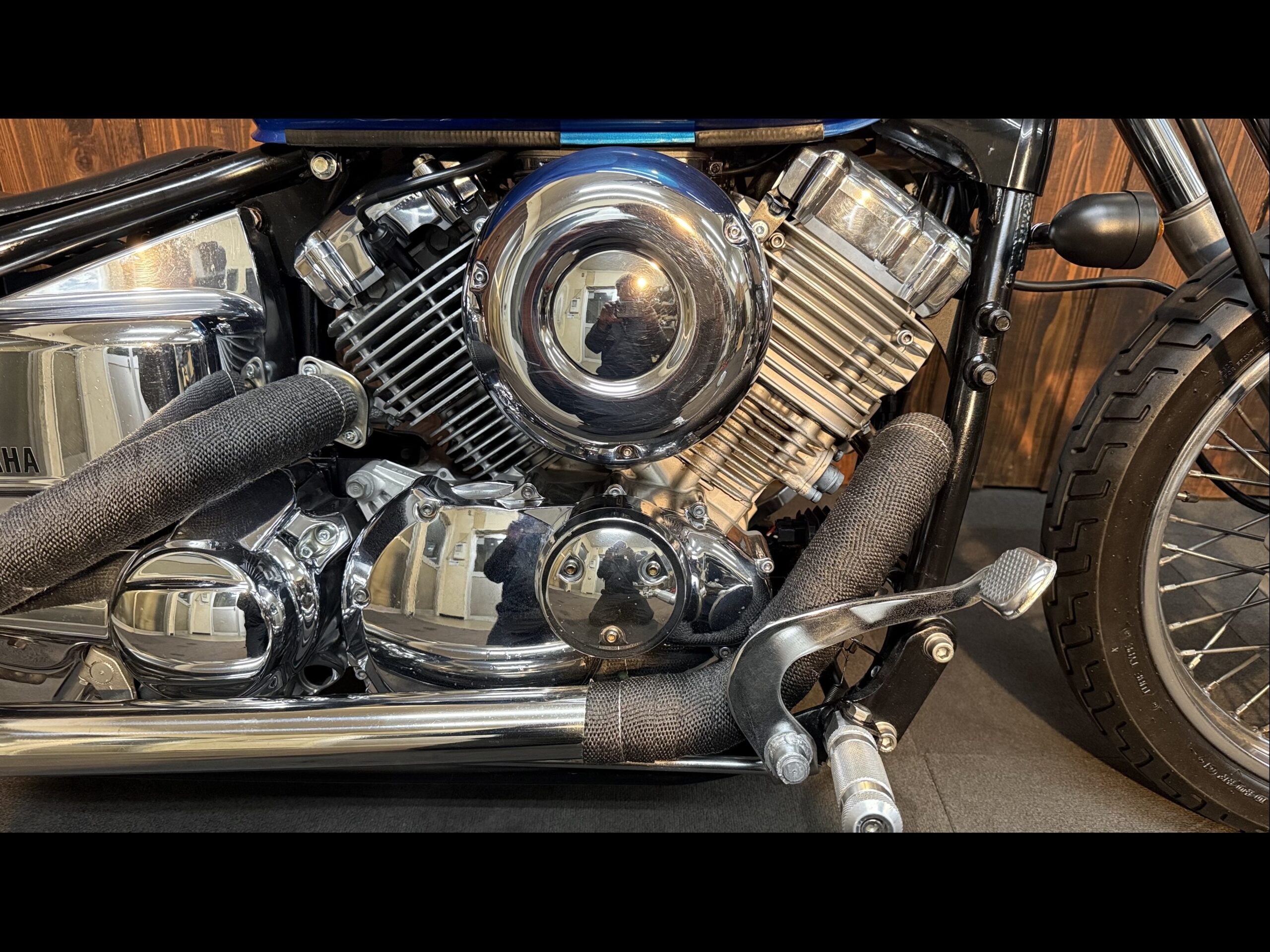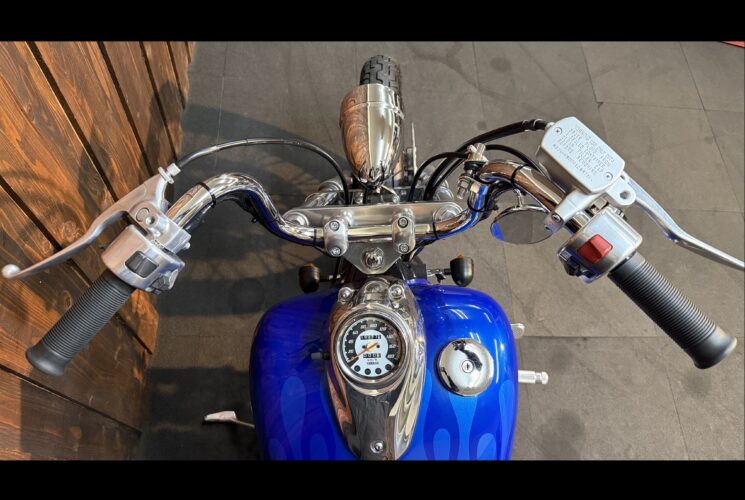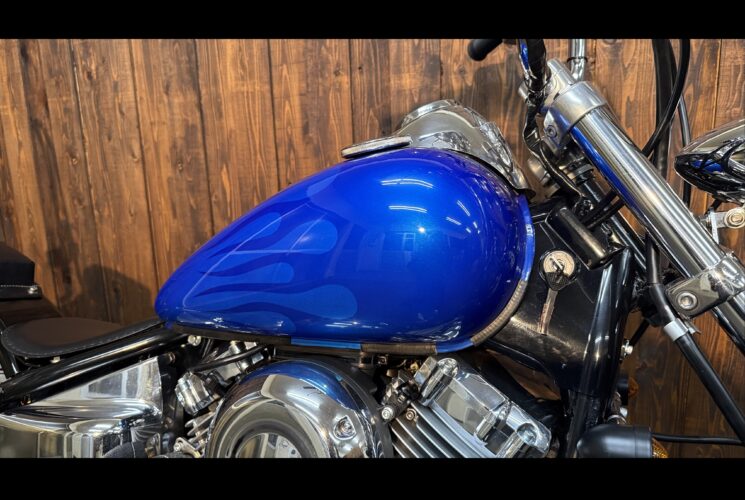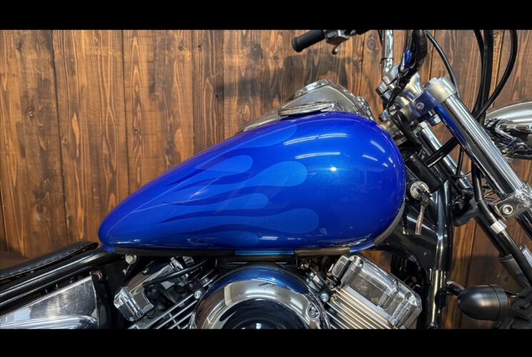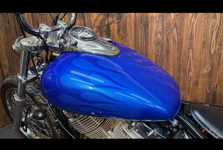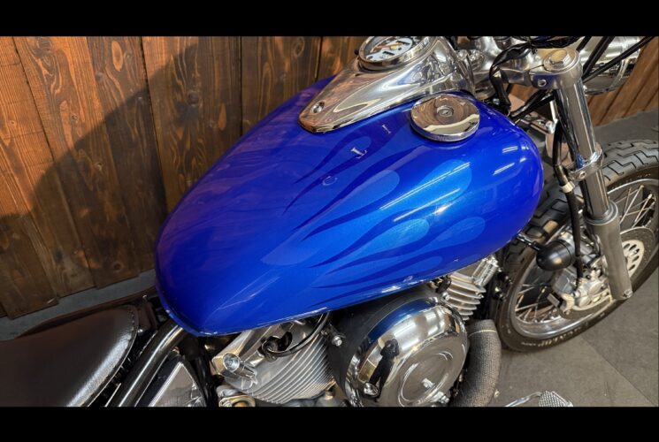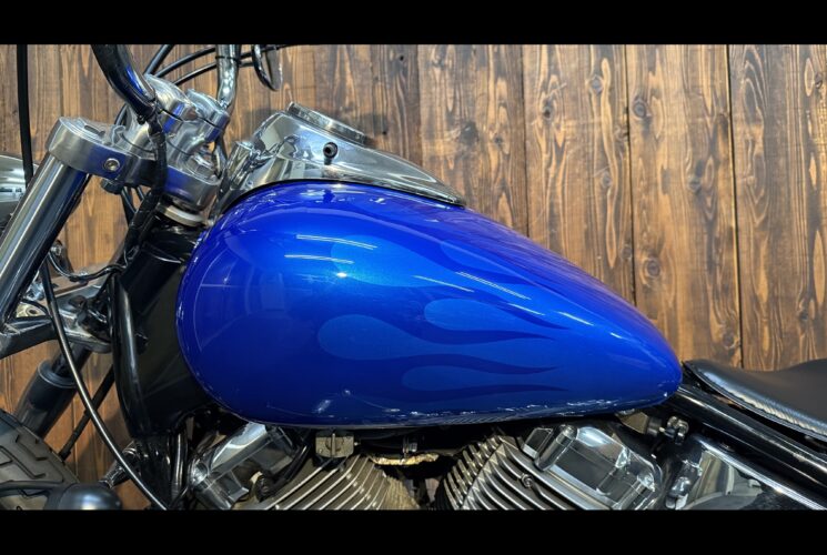 純正のタンクにはさりげなくブルーフレアのカスタムペイントになっています!!