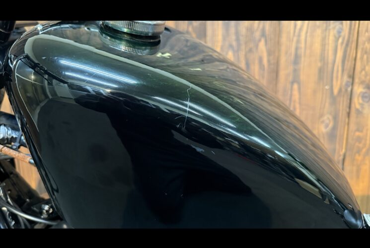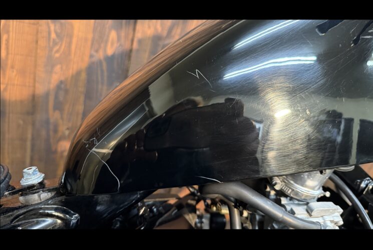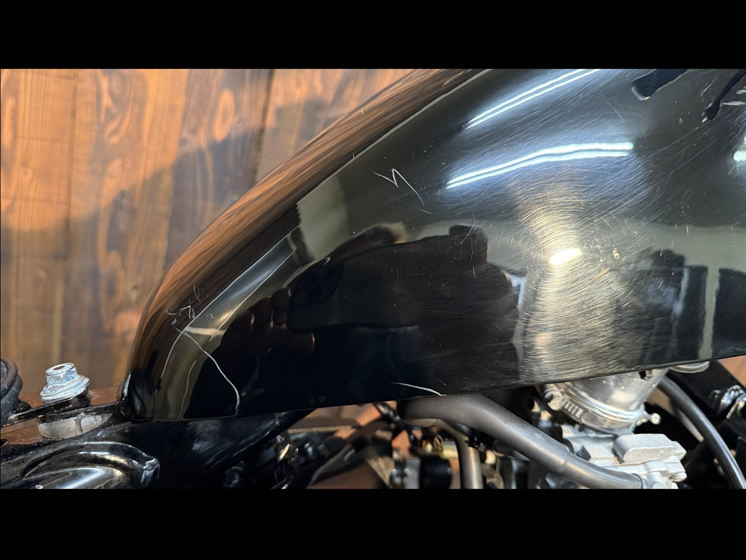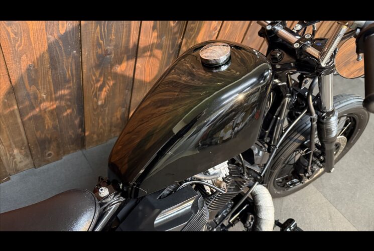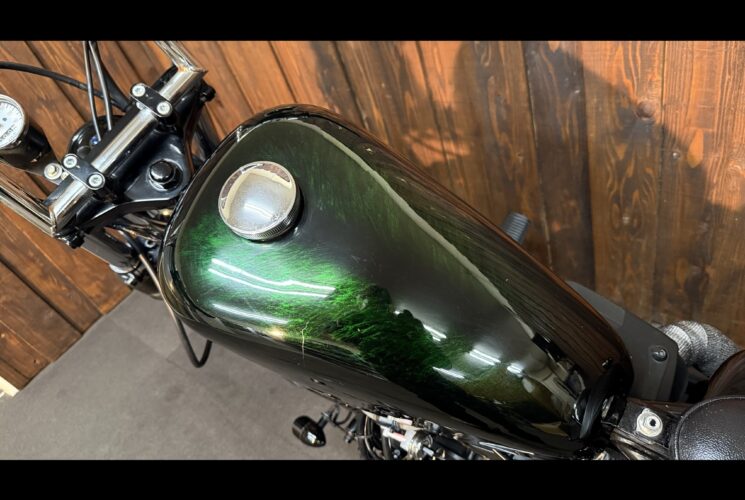 ブラックにペイントしたタンクには、グリーンベースで「獣の背中」をイメージしたマーブライザーペイントを施工し、個性を際立たせた仕様となっています☆